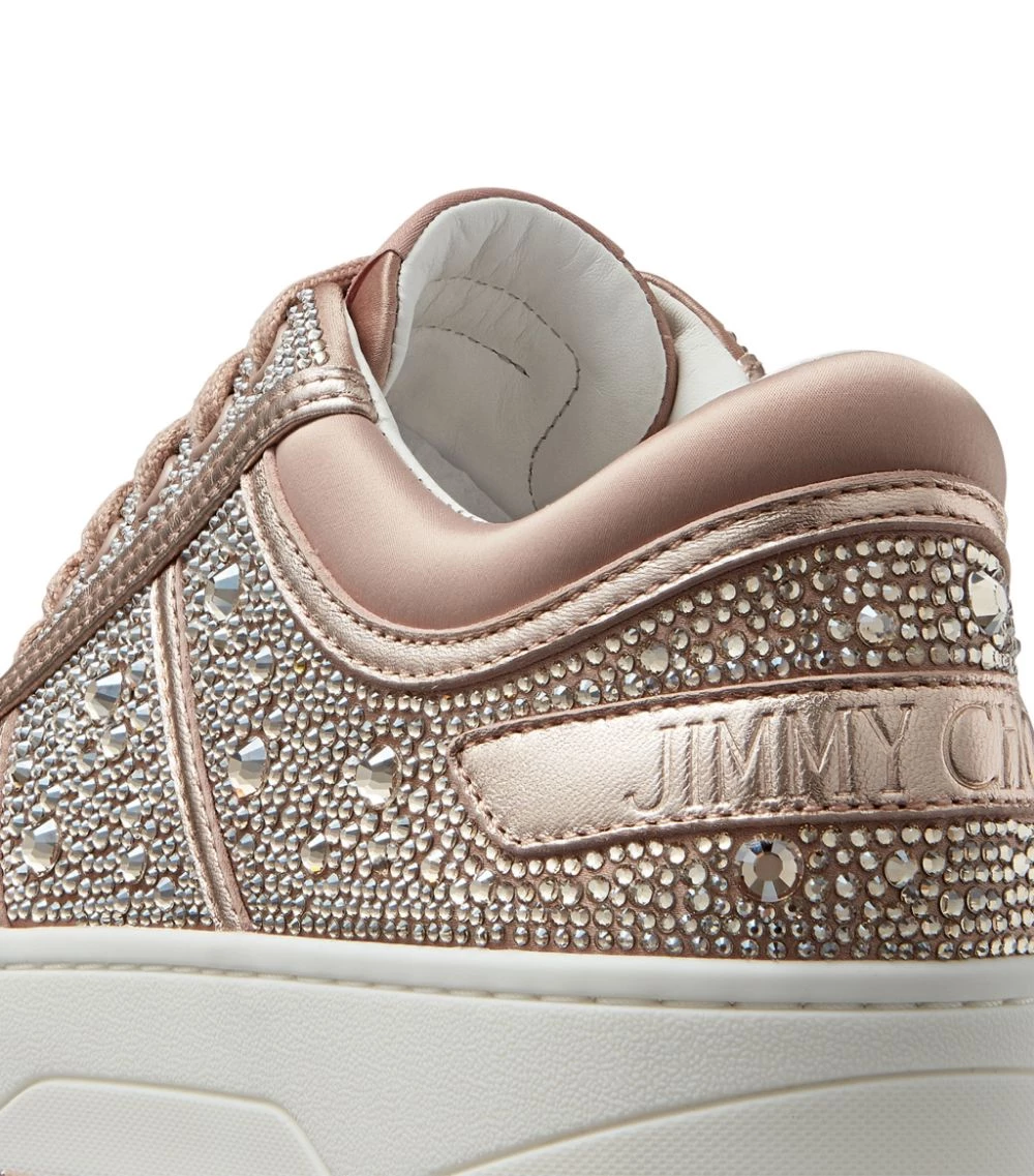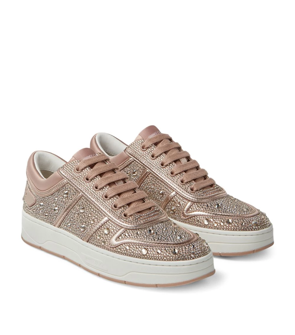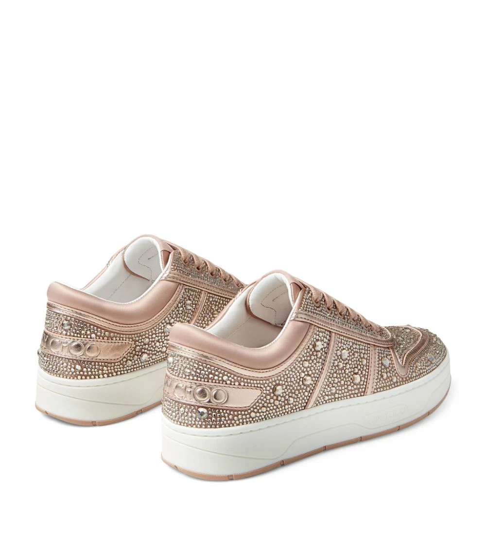 Poised upon a chunky sole, the sleek silhouette of the Hawaii sneakers by Jimmy Choo ensures the pair teams perfectly with retro denim. Imbued with the label’s signature glamour, the design is elevated by sparkling crystal embellishments in a complement to the metallic leather.