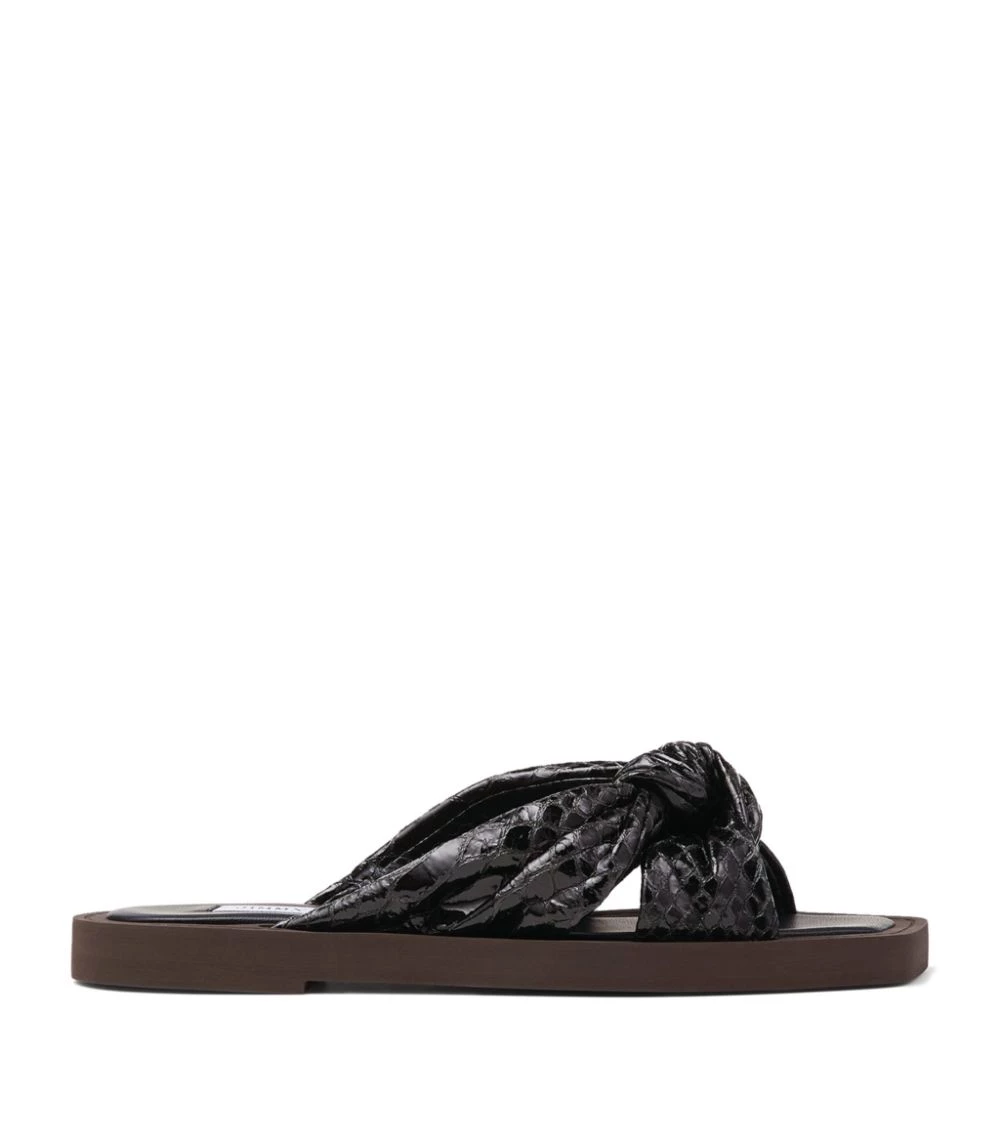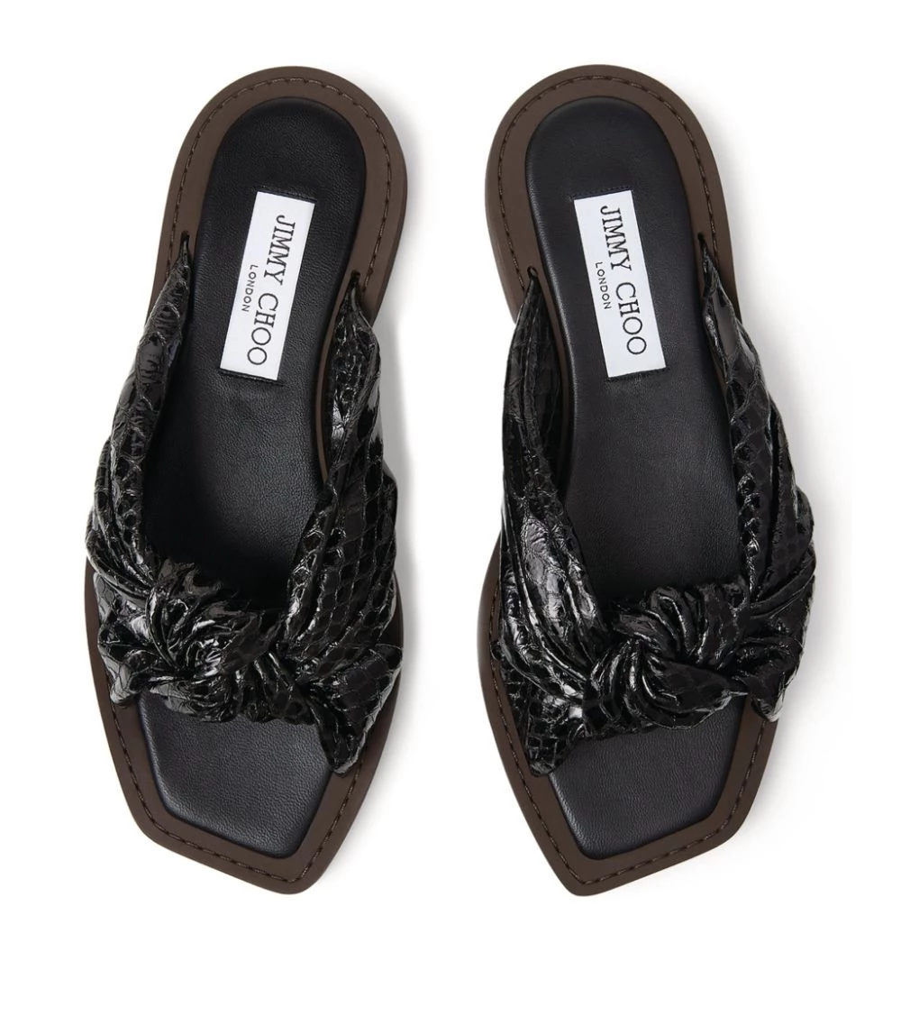 Complete warm-weather ensembles with effortless elegance by slipping into Jimmy Chooβs Tropica sandals. Crafted from snake-embossed leather, the pair sees a knotted centre that lends a touch of the brandβs high-octane appeal to the minimal silhouette.