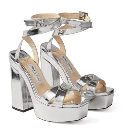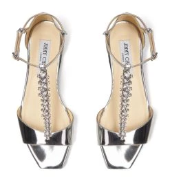 Jimmy Chooβs Azia sandals have eveningwear appeal in abundance thanks to their barely-there straps, leg-lengthening height and shiny finish. Streamlined and daring silhouettes are the labelβs speciality, and it shows with this pairβs alluring design β strips of glitter elegantly frame the shape of your feet, finishing in a slim fastening for a striking play on form.