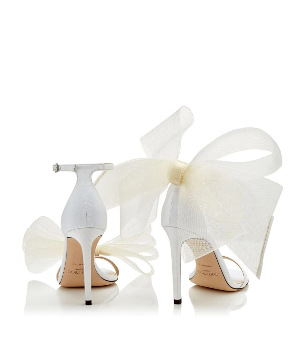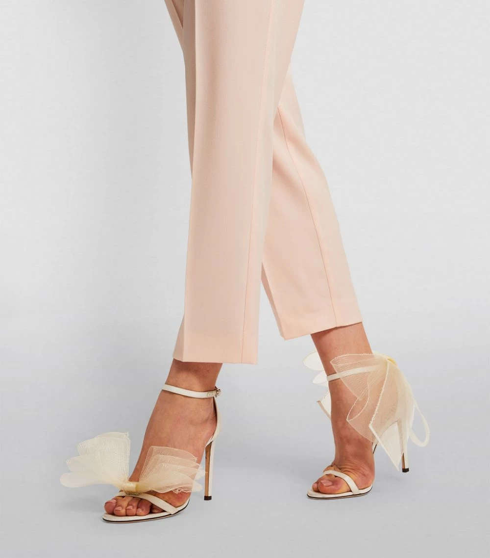 Extravagantly decorated with asymmetric crinoline bows to each shoe, up your special occasion style with Jimmy Choo’s Aveline sandals.The thin stiletto heel and ankle fastening make for an elegant silhouette that will perfectly complement summer ensembles.