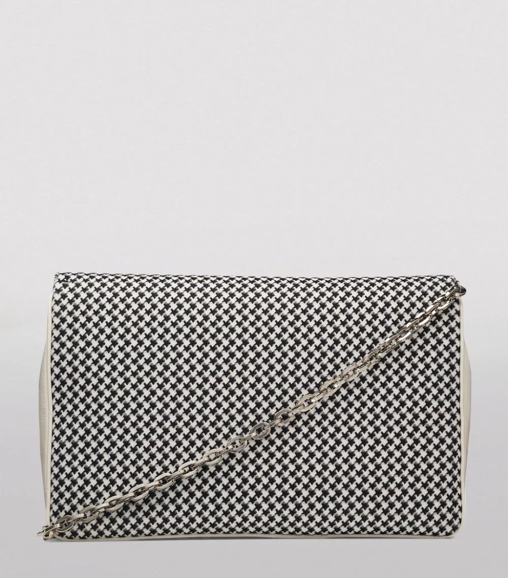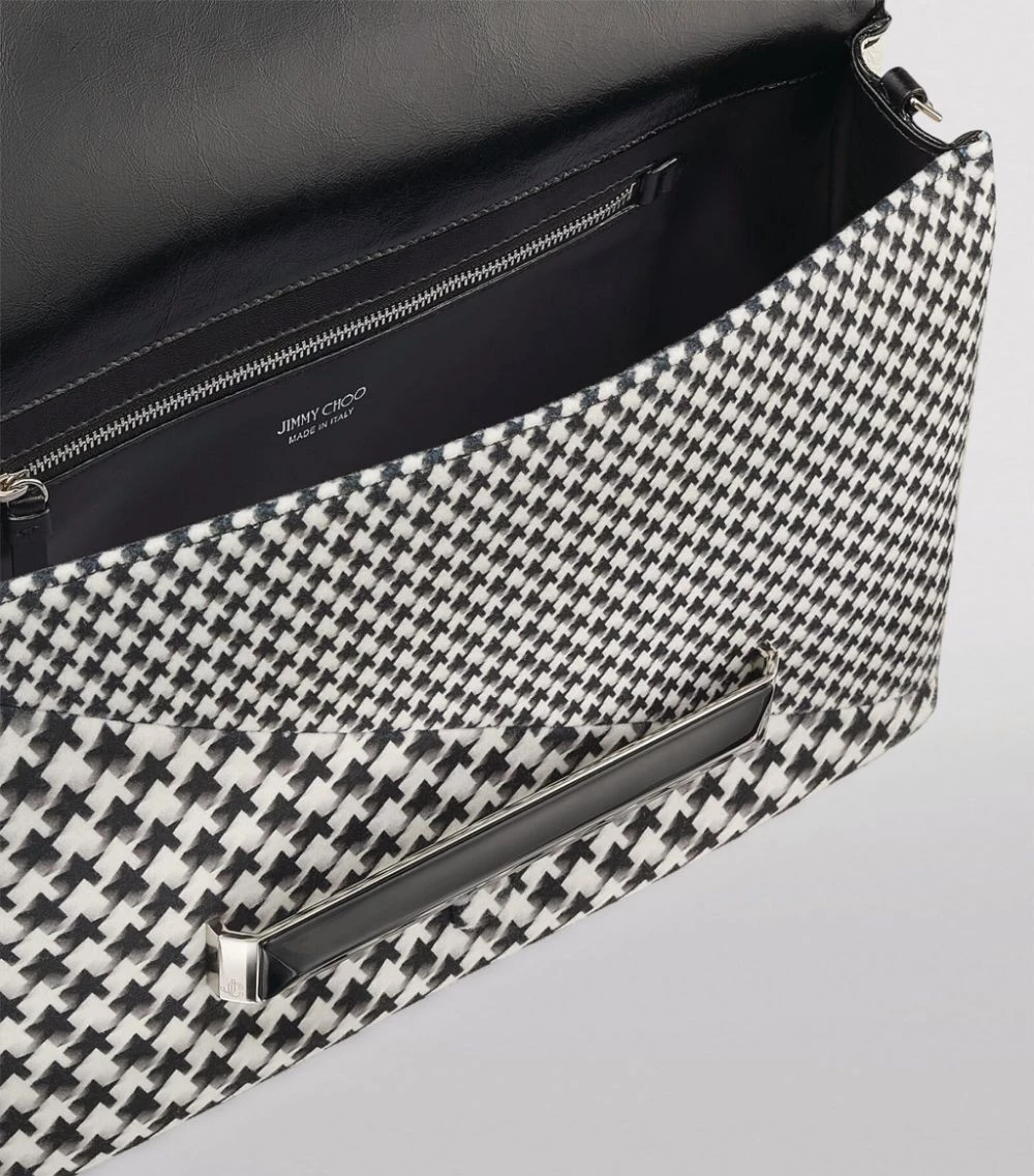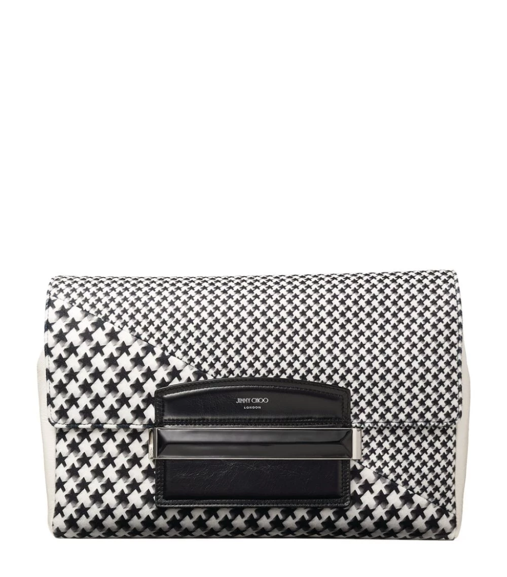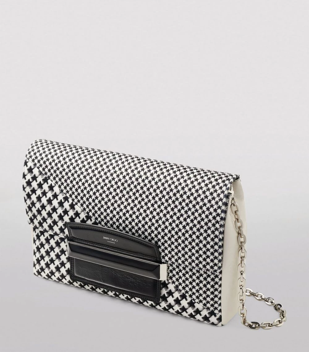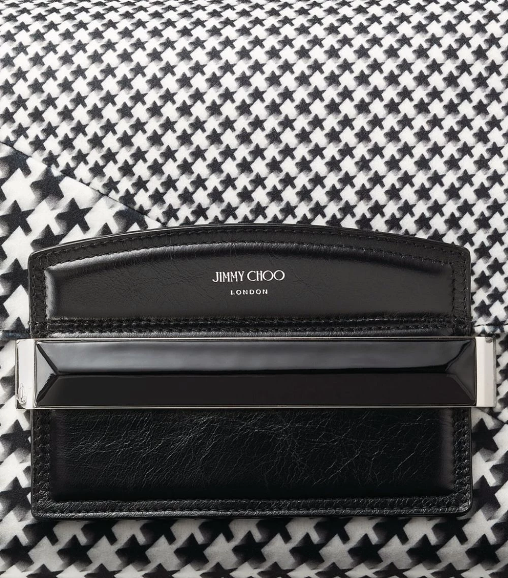 Those seeking the same attention to luxury as their collection of Jimmy Choo shoes will instantly fall in love with the Carolina shoulder bag. This monochrome version features a starry rendition of the classic houndstooth pattern, offering the ultimate accessory for endless nights out with friends. The cherry on top of the cake: the Houseβs iconic logo, proudly framing the sleek metal bar closure.
