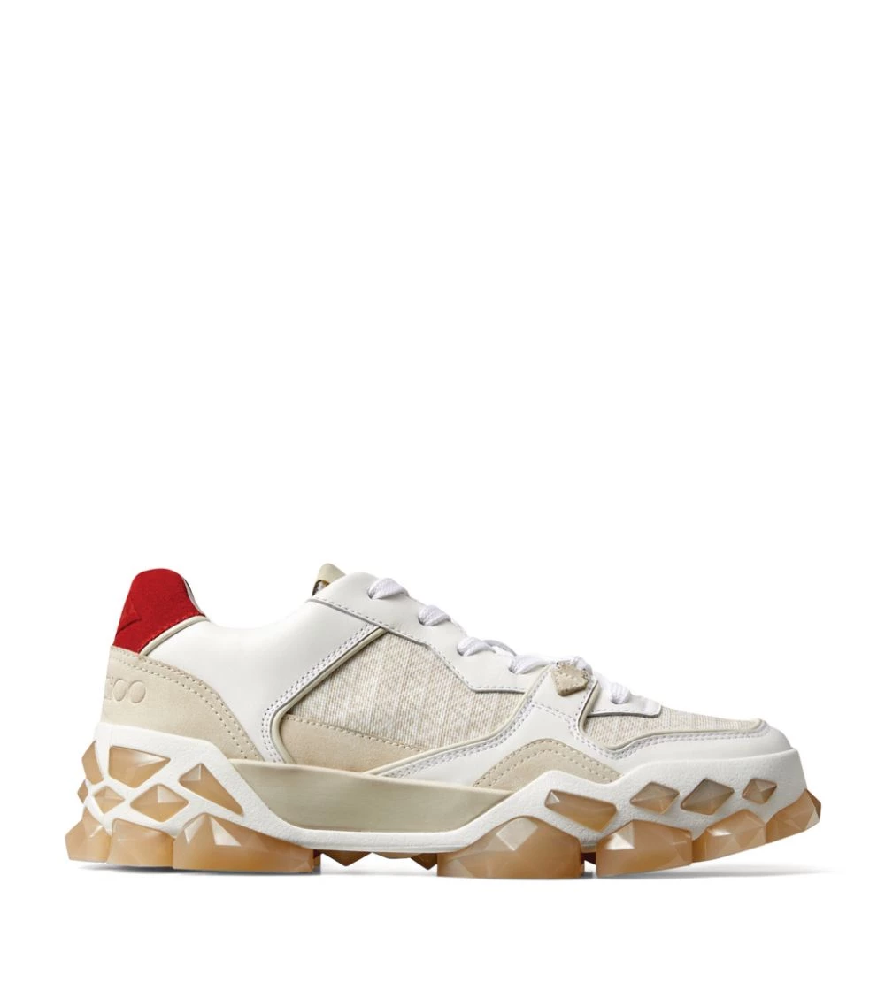 Even when interpreting the most casual of footwear trends, Jimmy Chooβs Creative Director Sandra Choi is still able to masterfully elevate it to new, sophisticated heights β case in point: the now iconic Diamond sneakers. Inspired by the rockβs multi-faceted structure, the oversized pair subverts tradition with its bold, unconventional sole. Undeniably dynamic with its mix of leather and fabric, the fashion-forward aesthetic draws from vintage styles to redefine the concept of casual luxury for the modern era.