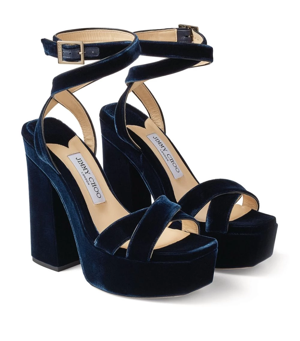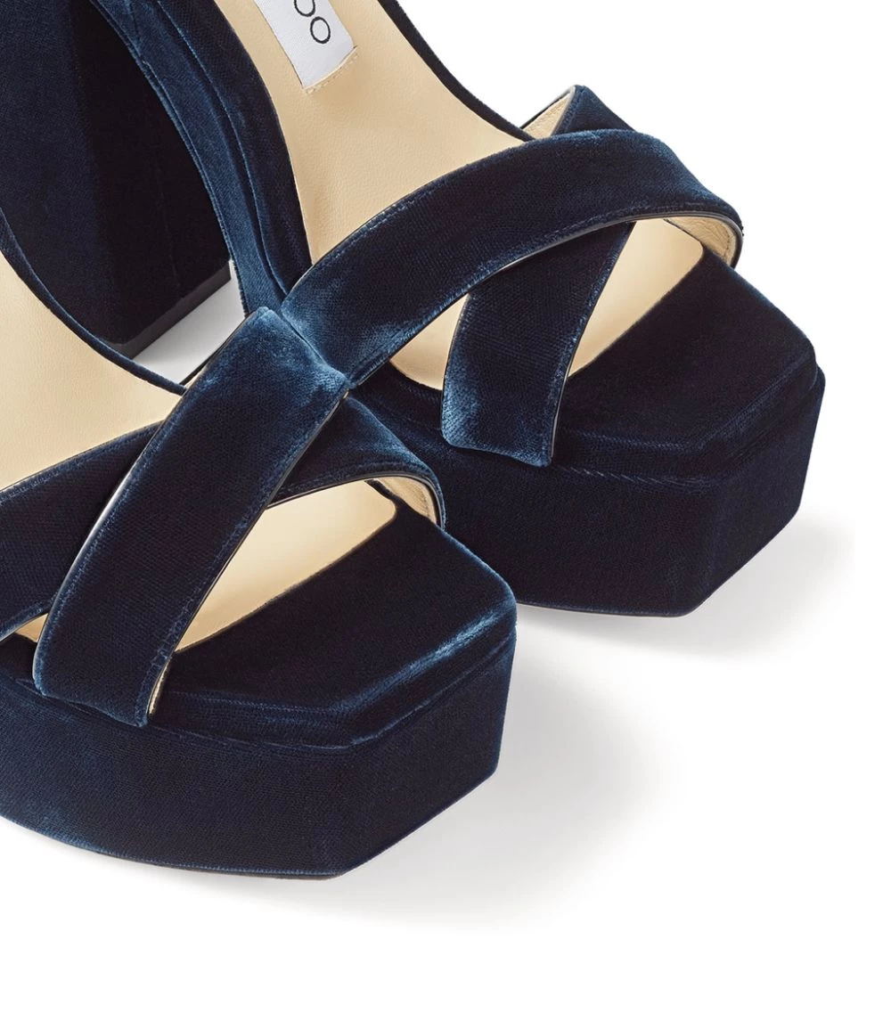 Brand new ๐Ÿ˜ Jimmy Choo Gaia 140 Velvet Platform Sandals NAVY Heeled Sandals ๐Ÿ””