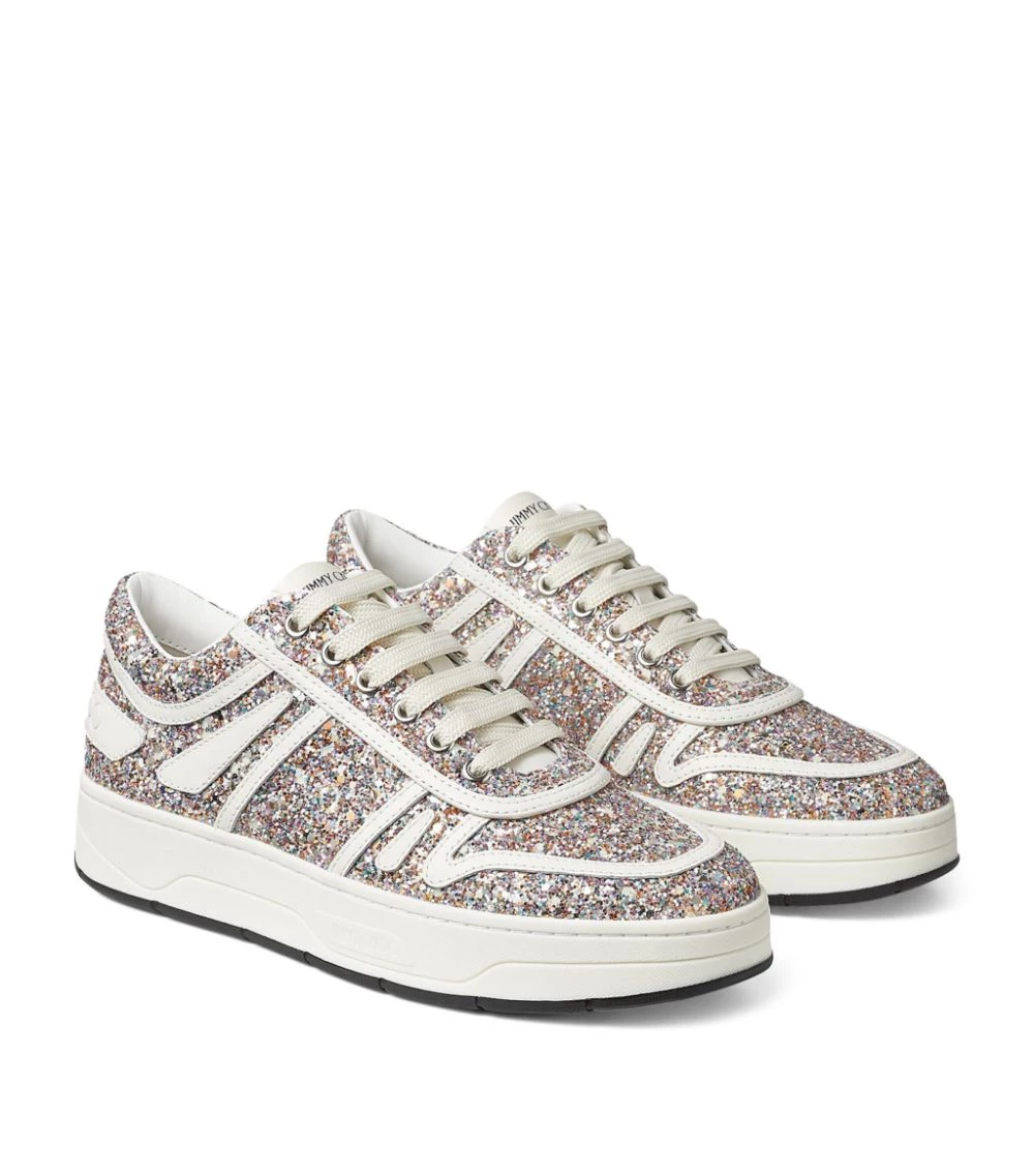 Poised upon a chunky sole, the sleek silhouette of the Hawaii sneakers by Jimmy Choo ensures the design teams perfectly with sharply tailored separates and casual denim alike. Imbued with a touch of the labelβs signature glamour, the pair is elevated by a multidimensional glitter finish set against a butter-soft leather base.
