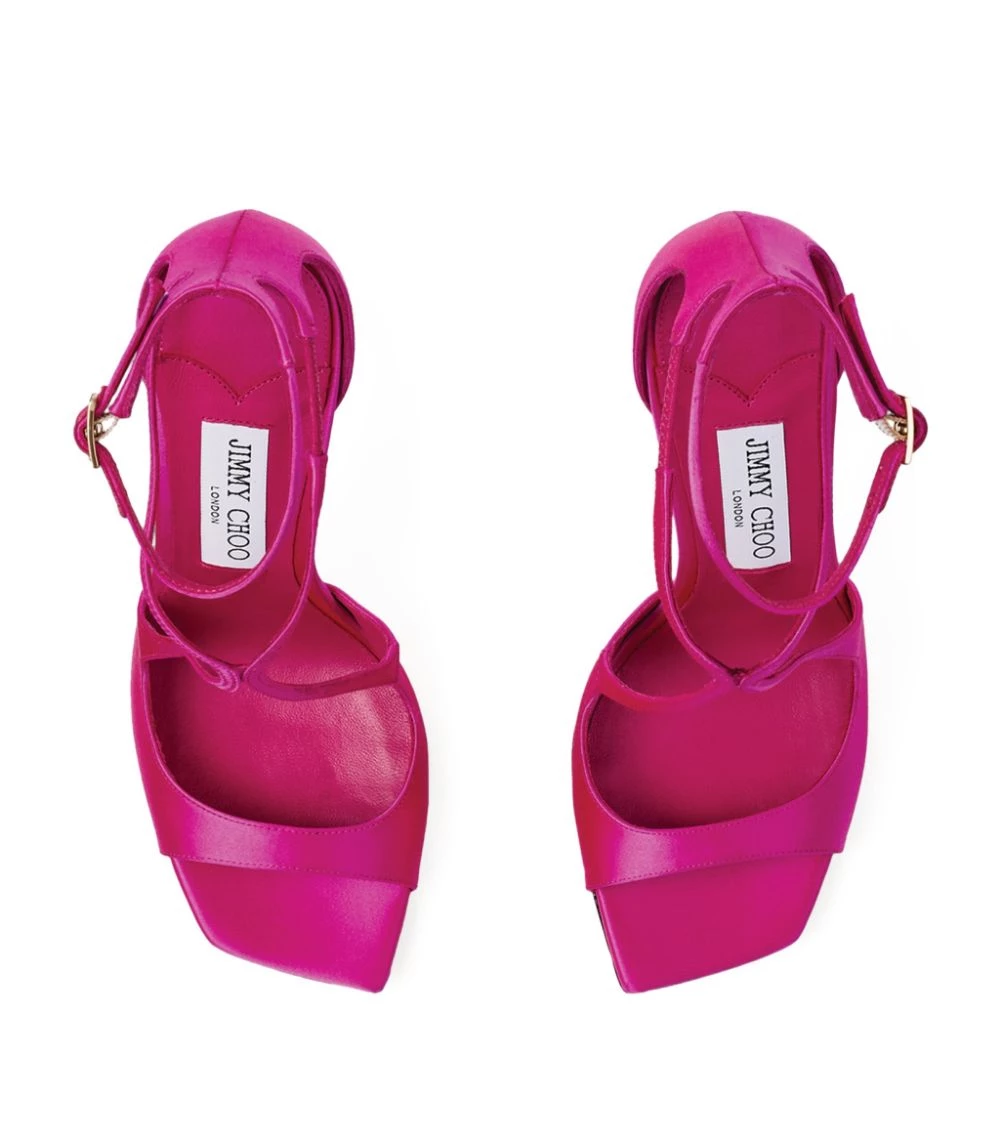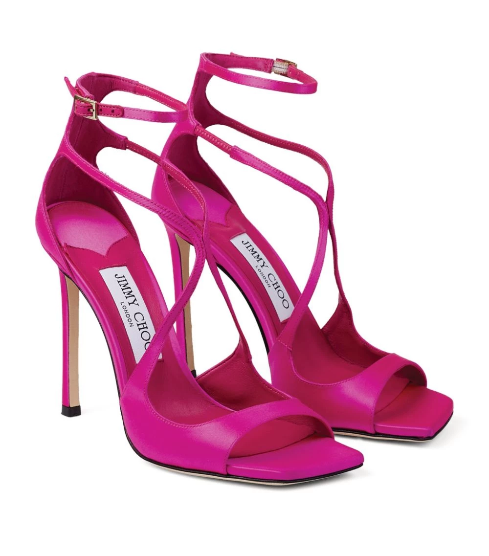 Jimmy Chooβs Azia sandals have eveningwear appeal in abundance thanks to their barely-there straps, leg-lengthening height, and smooth, shiny finish. Streamlined and daring silhouettes are the labelβs speciality, and it shows with Aziaβs alluring design β strips of bright satin elegantly frame the shape of your foot, finishing in a slim fastening for a striking play of lines on the ankle.