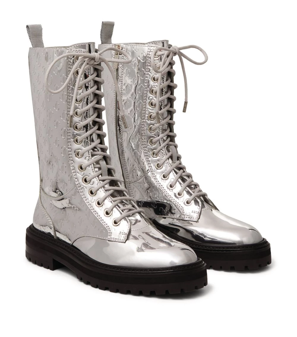 Step into the Cora boots by Jimmy Choo to imbue any ensemble with an air of rebellious sophistication. Crafted with a futuristic metallic sheen, the pair is cloaked with the London-based labelβs signature JC motif for instant recognition, making a powerful statement as you stroll along city streets.