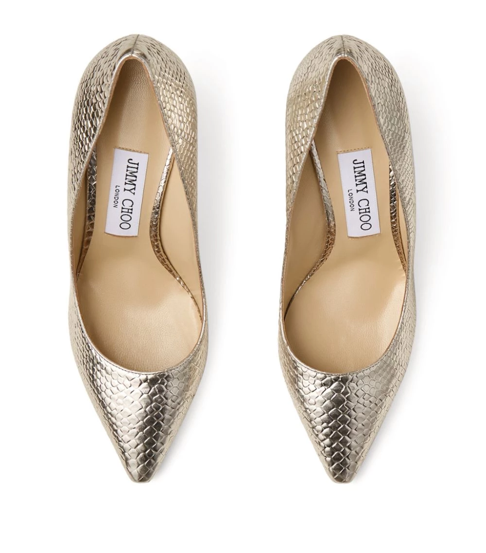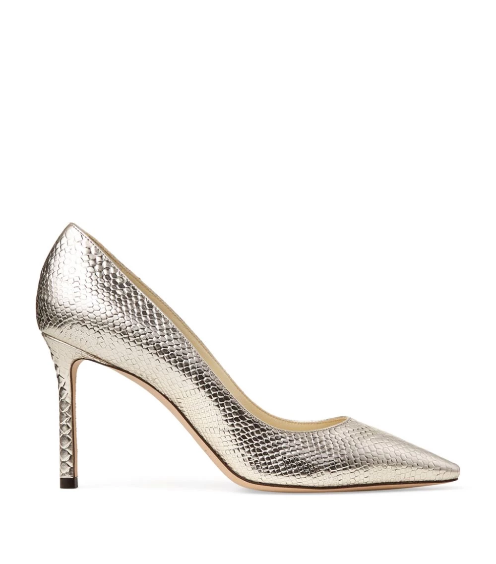 Updating a classic silhouette with a softer pointed toe, the Italian-made Romy pumps from Jimmy Choo are a timeless addition to your portfolio. Lined with soft leather for comfort, they boast an embossed, metallic upper and sleek stiletto heel to ensure elegance from day to night.