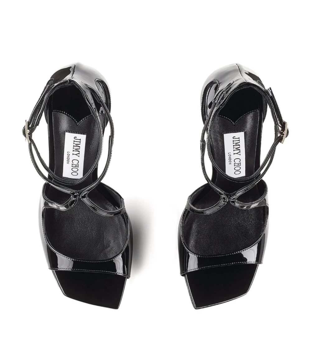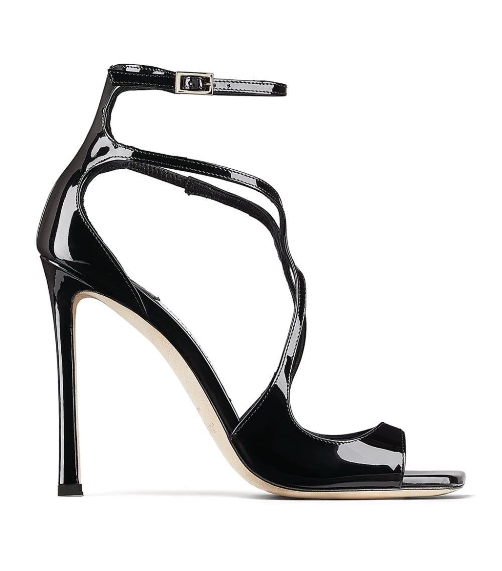 Jimmy Chooβs Azia sandals have eveningwear appeal in abundance thanks to their barely-there straps, leg-lengthening height, and sleek patent finish. Streamlined and daring silhouettes are the labelβs speciality and it shows with Aziaβs alluring design β strips of glossy leather elegantly frame the shape of your foot and finish in a slim fastening for a striking play of lines on the ankle.