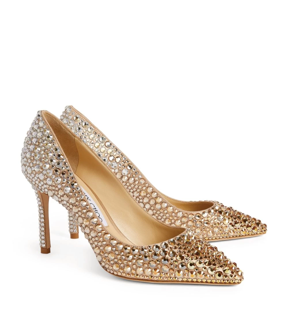 Updating a classic silhouette with a softly pointed toe, Jimmy Choo presents the Italian-made Romy pumps as a timeless and endlessly glamorous addition to your portfolio. Lined with soft leather for comfort, the dazzling crystal-embellished upper is complete with a sleek stiletto heel that ensures elegance all night long.