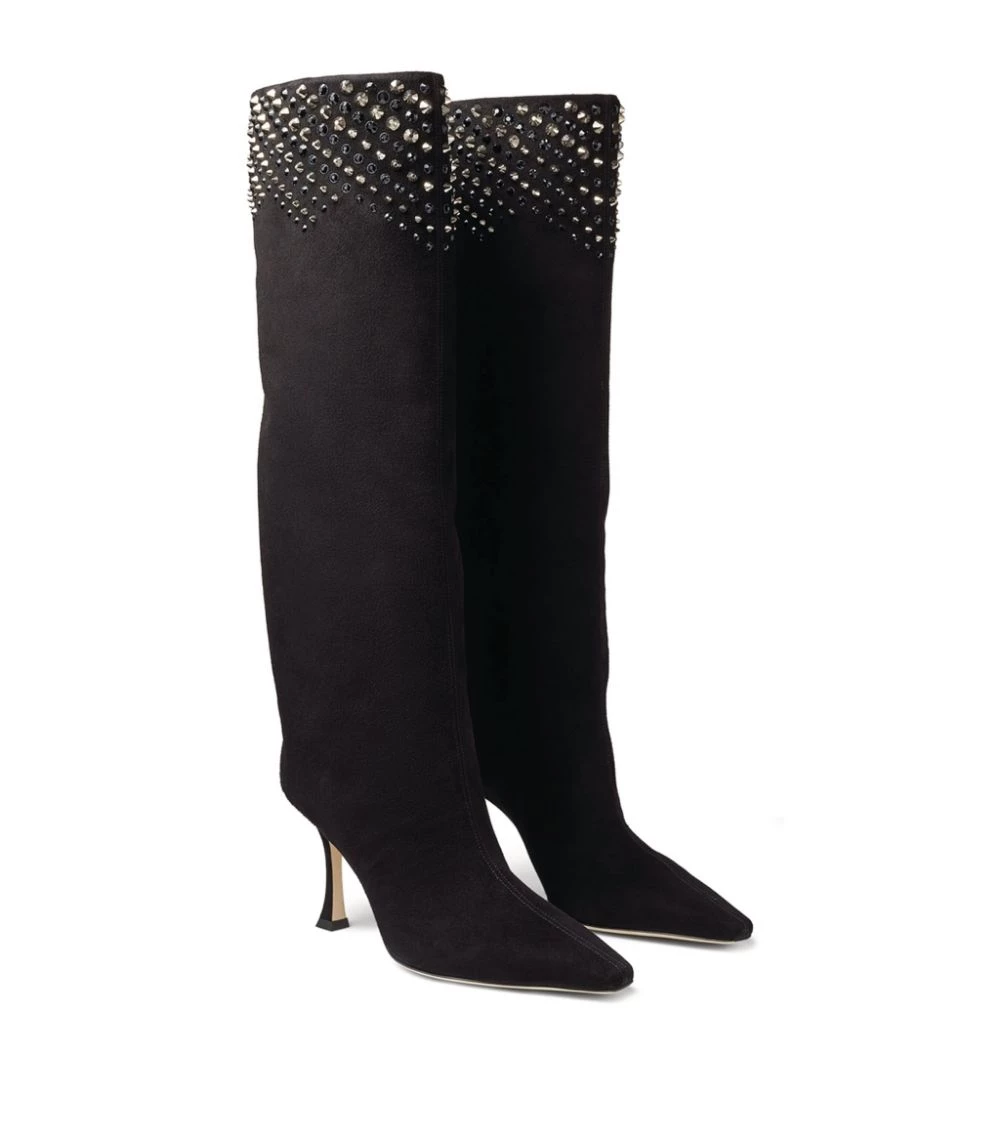 Thereβs a certain air of confidence that comes with wearing an impeccably crafted pair of knee-high boots β even more so when theyβre envisioned by red carpet-favourite Jimmy Choo. The Chad silhouette is at once refined and statement-making, designed in smooth suede, balanced upon a sculpted stiletto heel and poised with a characteristically cool pointed toe.