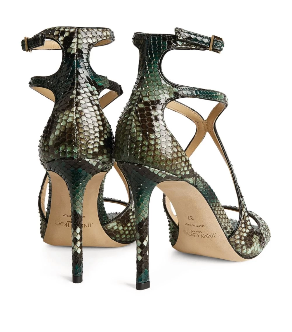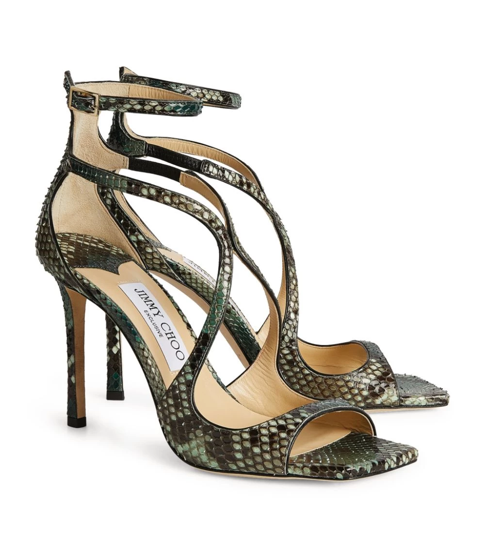 Define your evening with the Jimmy Choo Azia stiletto heels, crafted from a mesmerising emerald python leather they’re sure to stop the room. The exotic print is complemented by the snake caged design that cascades elegantly down the ankle and foot for a attention grabbing profile, sure to add the perfect finishing touch to your ensemble.