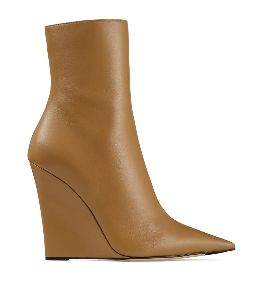 Famed for its flattering and feminine silhouettes, Jimmy Choo makes no departure from the usual with the Baku ankle boots β guaranteed to bring an air of refined glamour to your wardrobe. Handcrafted in Italy to towering proportions, they have a supple leather silhouette, sophisticated pointed toe and stacked wedge heel thatβs comfortable and easy to walk in from day to dark.