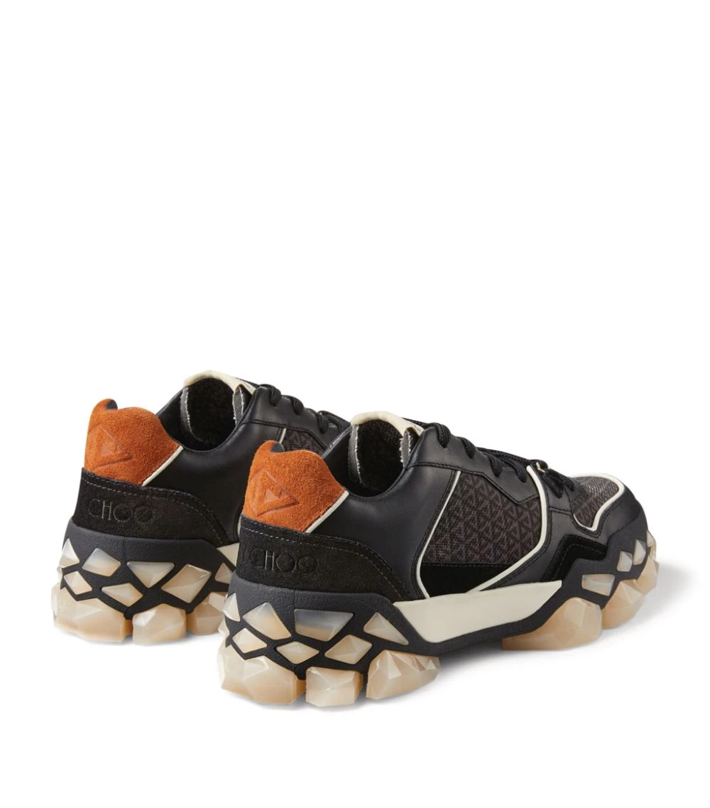 Even when interpreting the most casual of footwear trends, Jimmy Chooβs Creative Director Sandra Choi is still able to masterfully elevate it to new, sophisticated heights β case in point: the now iconic Diamond sneakers. Inspired by the rockβs multi-faceted structure, the oversized pair subverts tradition with its bold, unconventional sole. Undeniably dynamic with its mix of leather and fabric, the fashion-forward aesthetic draws from vintage styles to redefine the concept of casual luxury for the modern era.