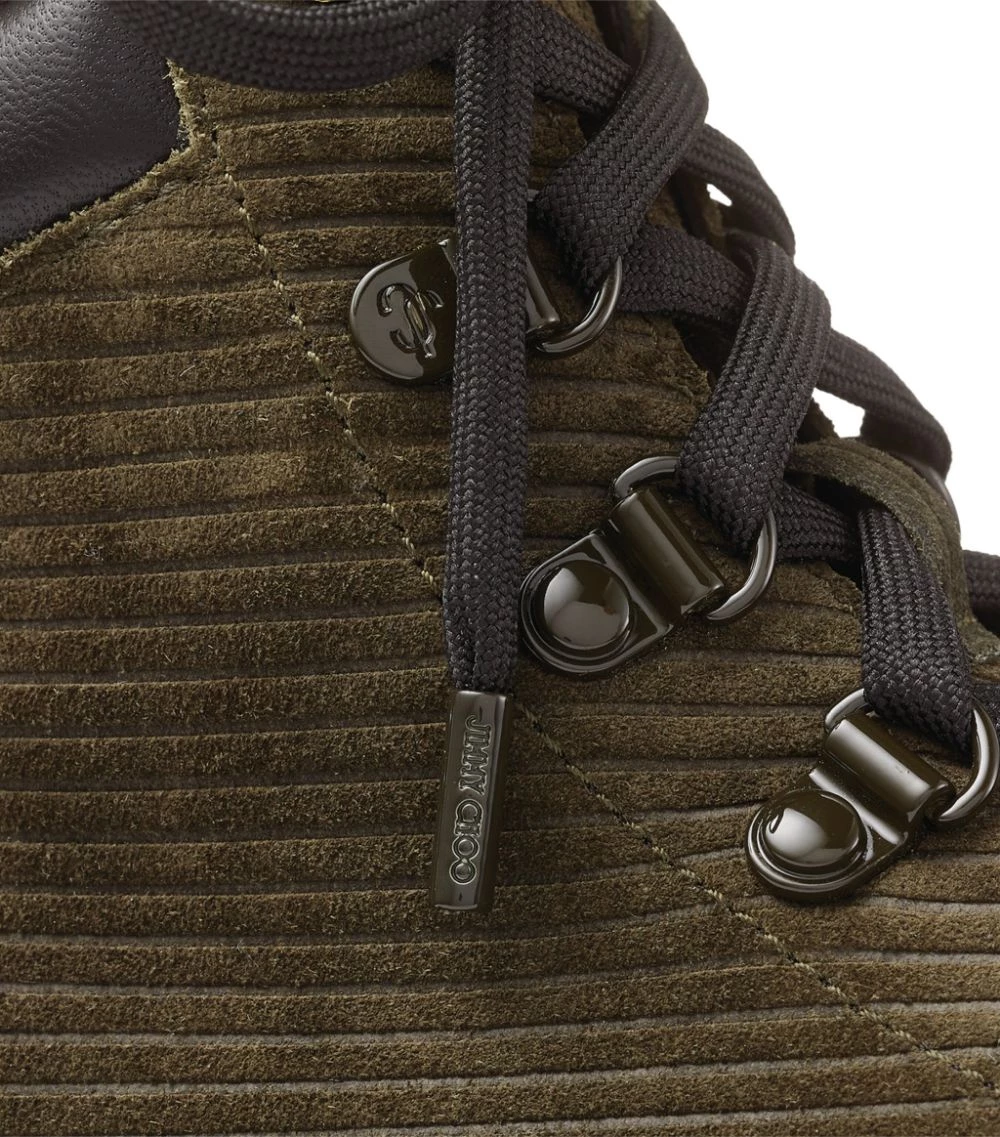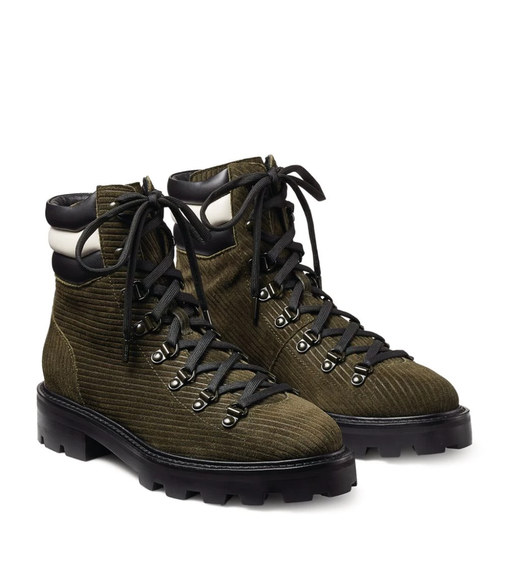 Updating a biker silhouette with softer lines and premium materials, the Eshe boots from Jimmy Choo are crafted from soft suede with a corduroy finish for a durable yet luxurious finish. Punctuated with a classic lace-up fastening, the style is completed with contrasting trims at the ankle, securing the look with a contemporary touch.