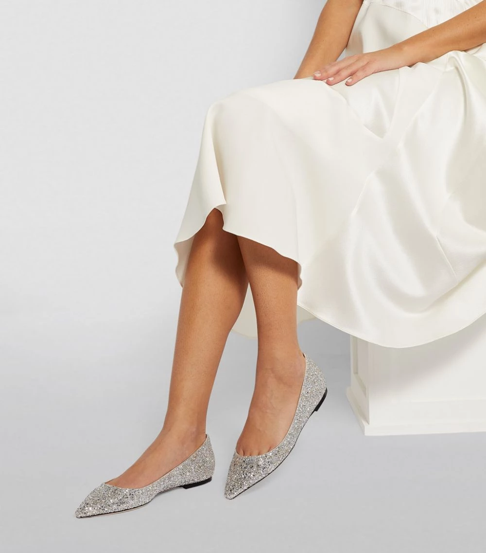 Blanketed in glistening glitter for the new season, Jimmy Choo’s Romy ballet flats are a daytime-appropriate variation of one of the label’s hallmark silhouettes. Just as classic and versatile as the original, their leg-lengthening pointed toe and leather sole ensure an enviably luxe feel.
