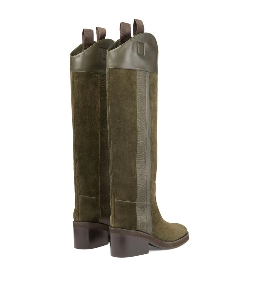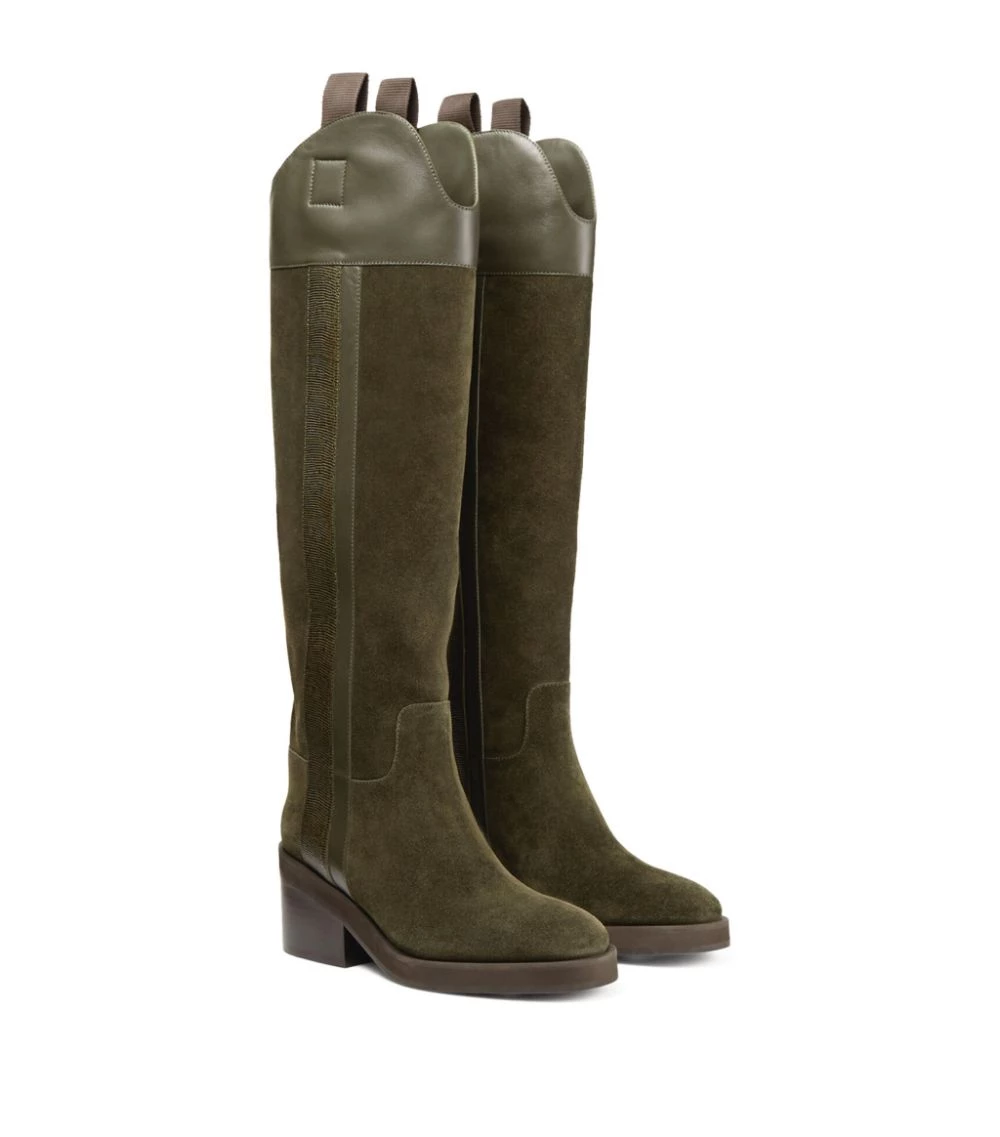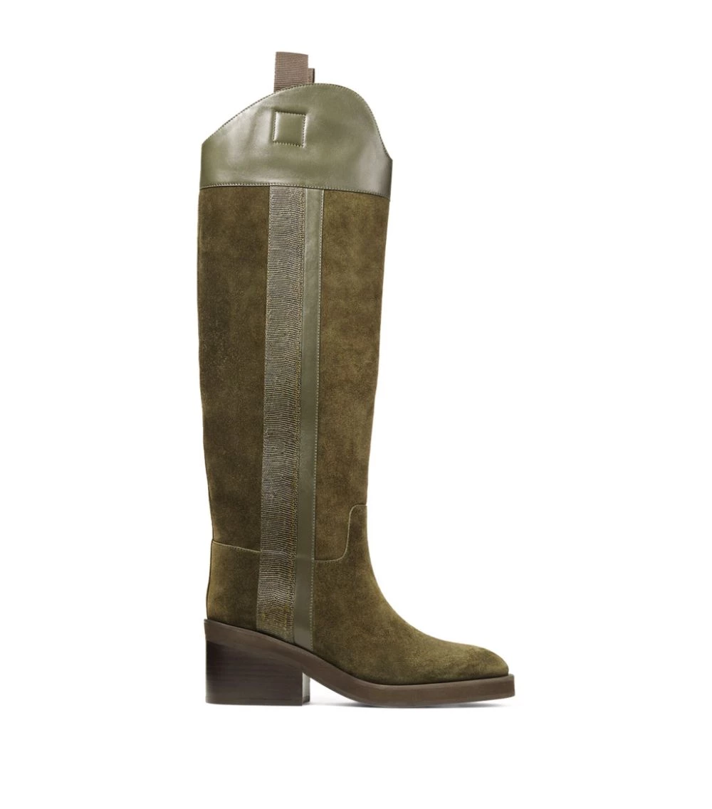 Prepare your wardrobe for the falling leaves of autumn with the Tonya knee-high boots from Jimmy Choo, imagined in a classic equestrian boot silhouette. Expertly crafted in Italy from sumptuously soft suede, they’re elevated upon a small block heel for delivering added elegance when paired with your everyday look.