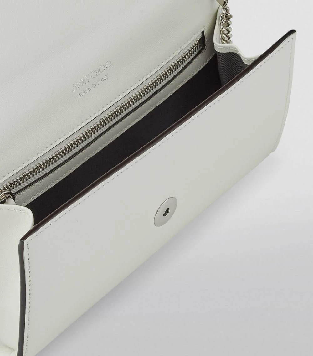 A sleek day-to-night companion, the Paris bag by Jimmy Choo is functional, elegant and modestly glamorous. Imagined in supple leather, this piece may seem simple at first glance, but a closer look invites you to appreciate its beauty; note the silver-tone hardware and delicate chain strap. Light-reflecting crystalsalso demand attention, perfectly positioned underneath the British Houseβs signature.