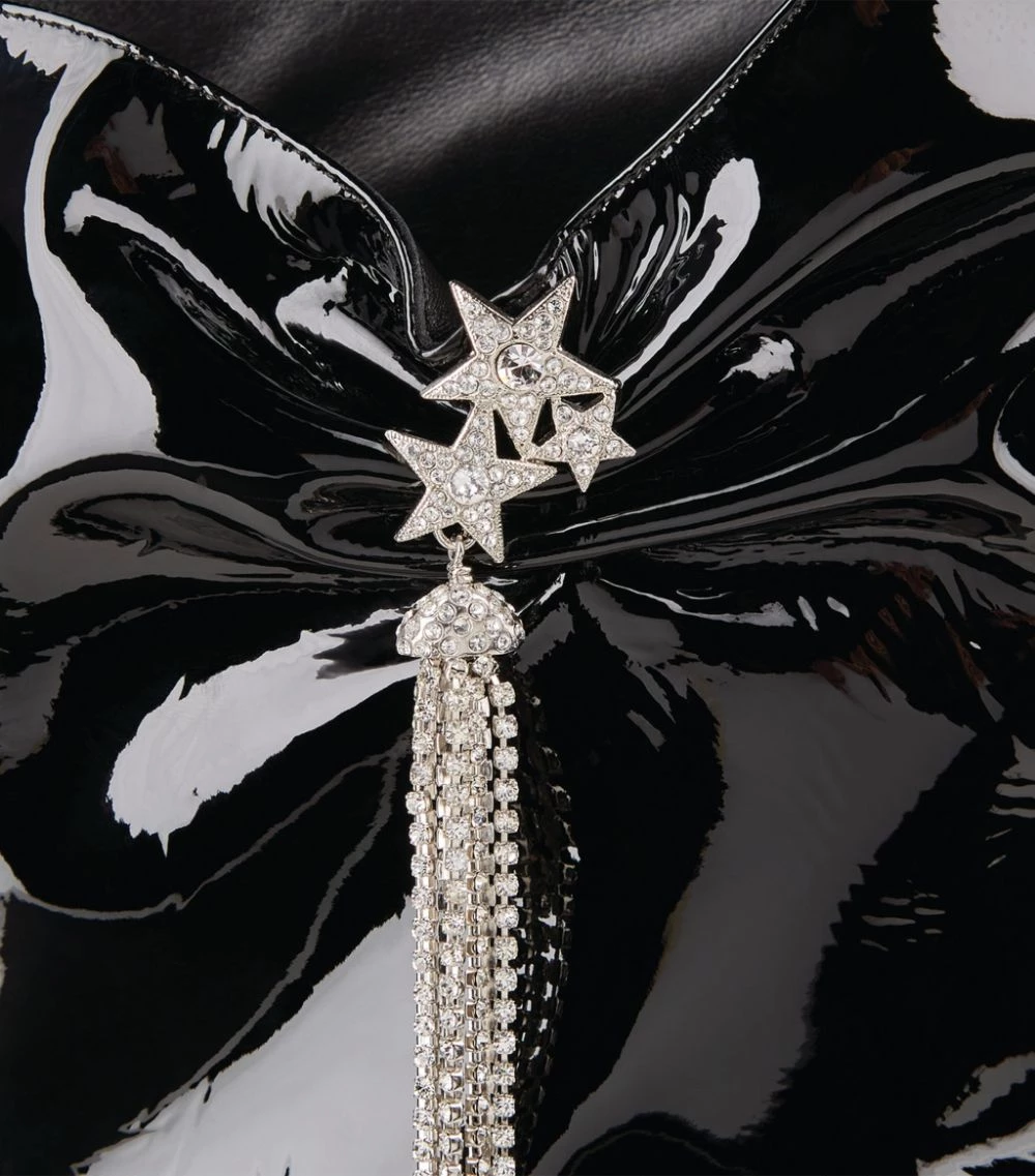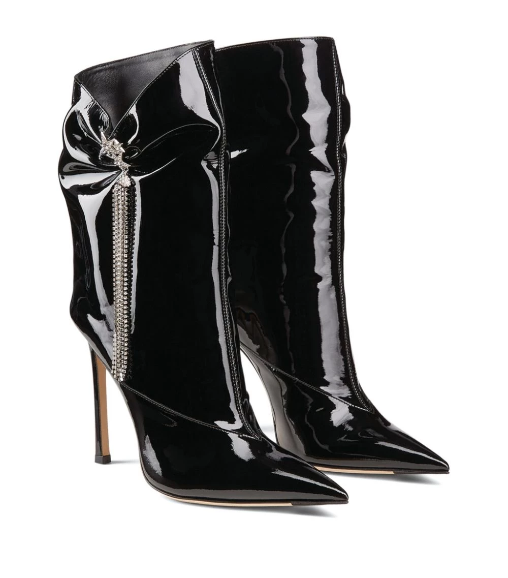The Oriel ankle boots from Jimmy Choo are reimagined as a daring evening pair. If they weren’t already luxurious enough, this iteration is crafted from high-shine patent leather that further accentuates its signature gathered effect and sharply poised stiletto heel. They’re complete with the crystal-embellished tassel that’s usually seen dangling from the brand’s coveted handbags.