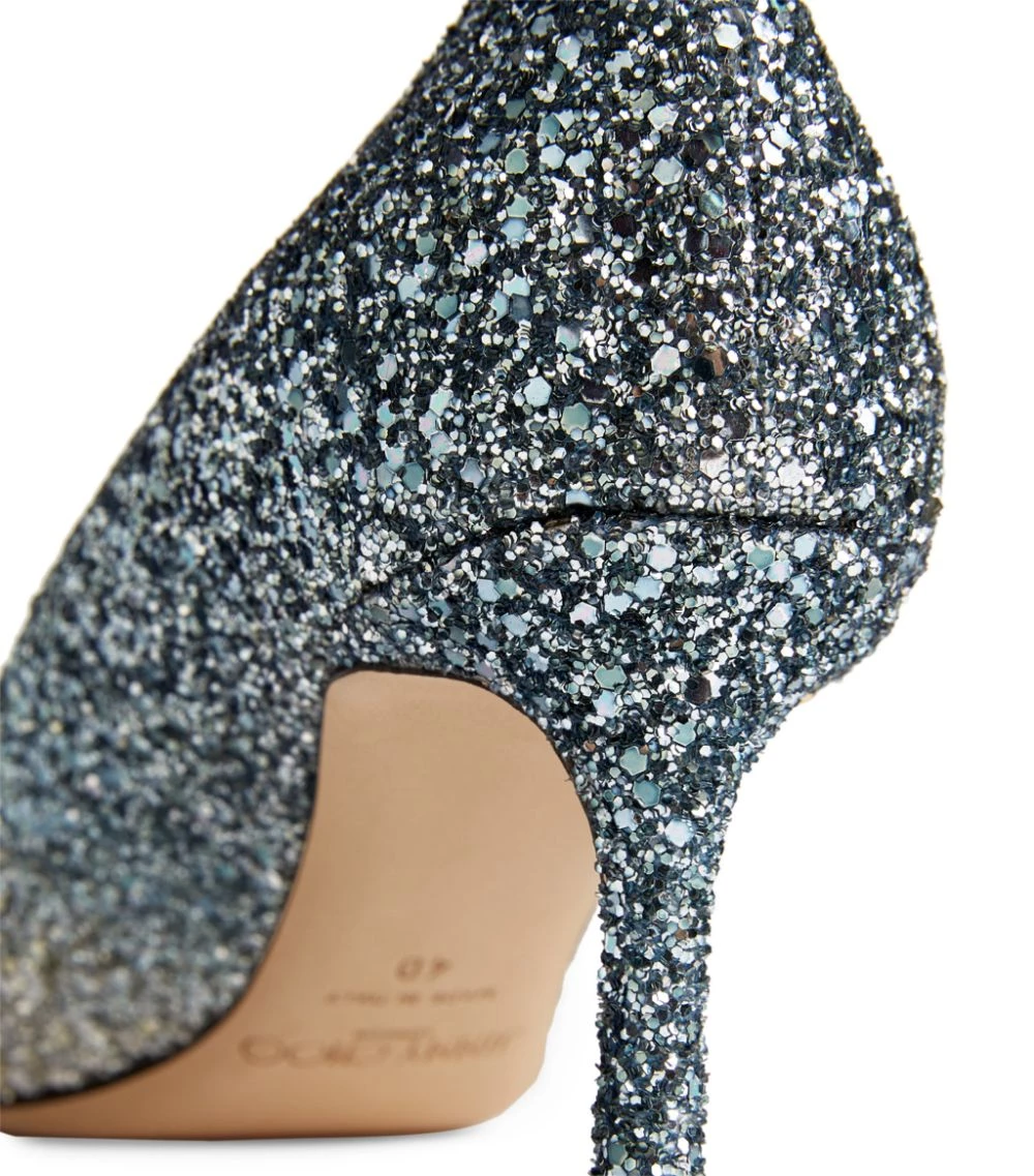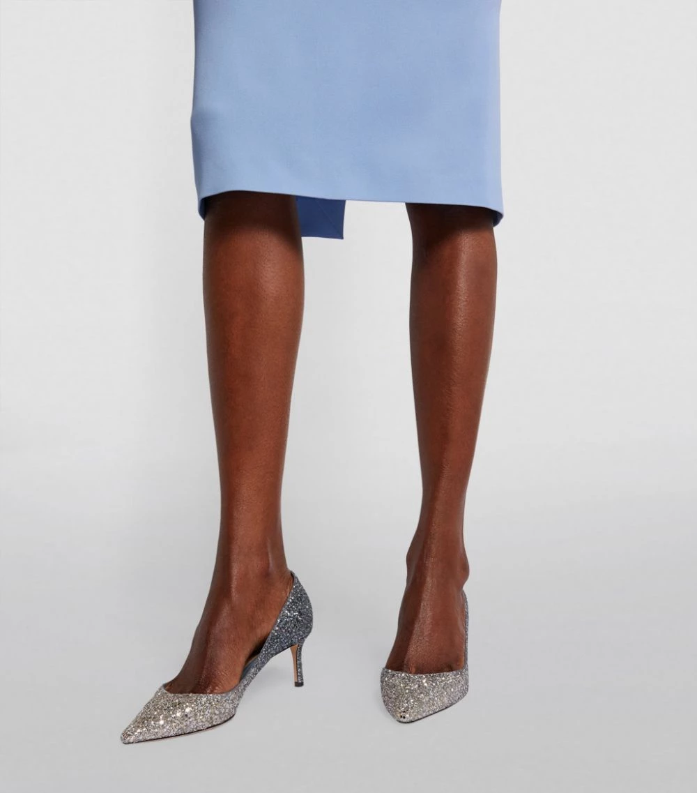 A dazzling addition to your portfolio of occasion-ready shoes, Jimmy Choo’s Romy pumps are a striking rendition of a timeless silhouette. Awash with sparkling glitter and lined with premium leather, this pair boasts a mid-height heel that provides lift without compromising on comfort β they allow you to go from the dinner table to the dancefloor with ease.