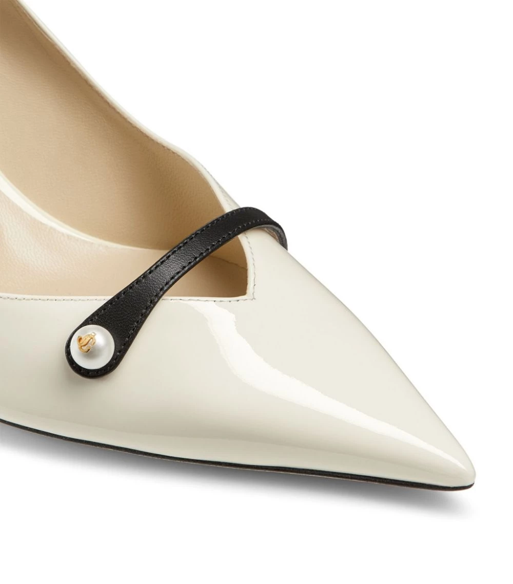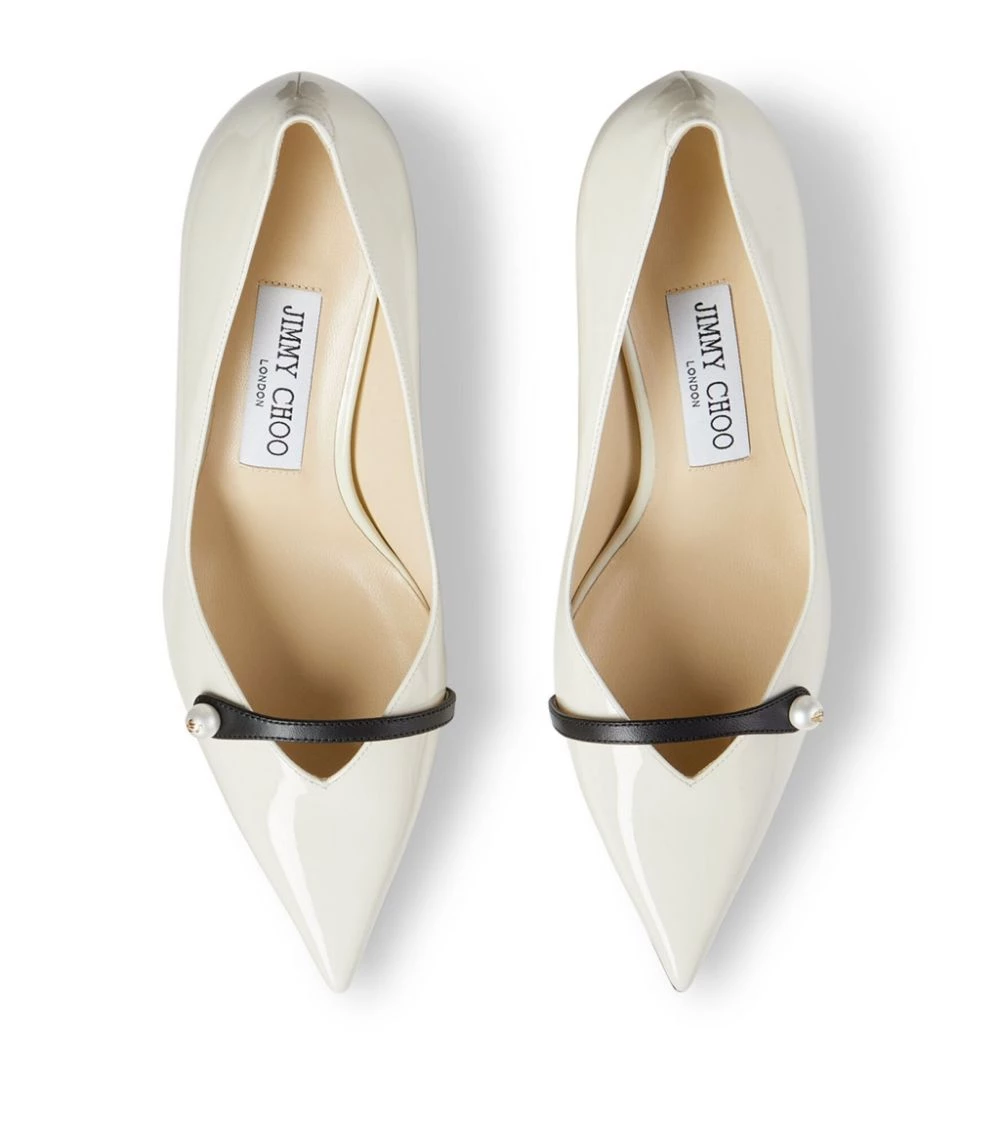 The arrival of a new season is always synonymous with the resurgence of beloved trends from the past and the dismissal of short-lived ones β the Rosalia pumps by Jimmy Choo representing the former. Signalling a return to classic elegance with its sharply pointed toe and lustrous patent finish, the sleek pair also embraces modernity with a sculptural heel and logo-embossed pearl to the strap.