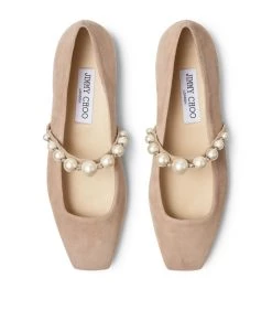 Cheap π Jimmy Choo Ade Embellished Suede Ballerina Flats Ballet pink/white Ballet Flats π