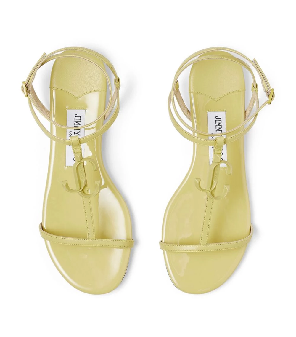Crafted from sun-bleached leather, the Jimmy Choo Alodie sandals are proof that striking shoes donβt always have to come in the form of towering heels. Featuring a delicate ankle strap and T-bar complete with the labelβs signature JC emblem, the buttery pair is equally suited to local parks and tropical destinations.