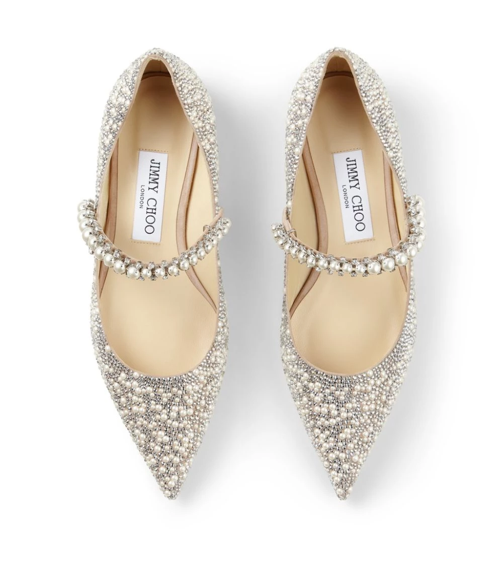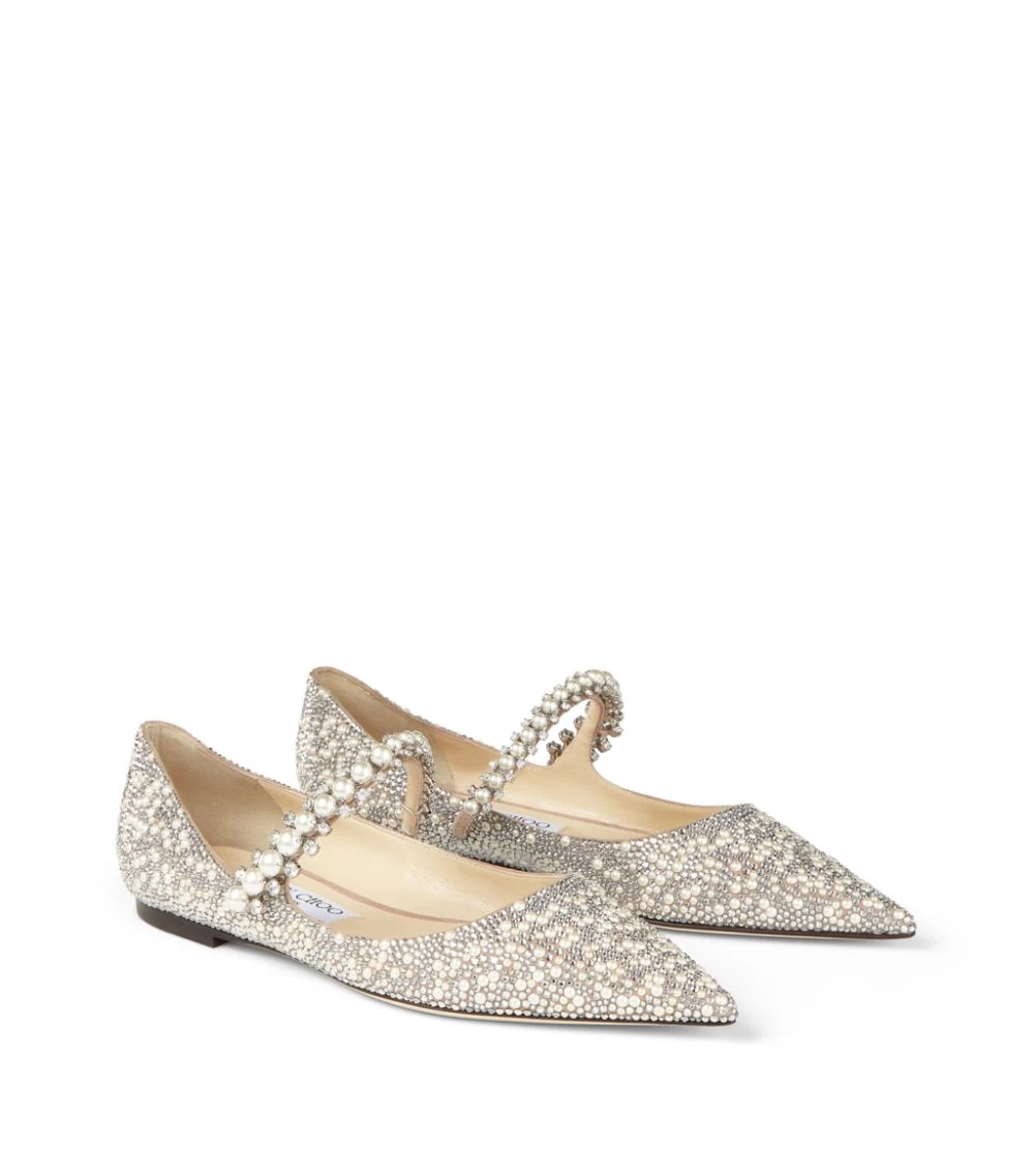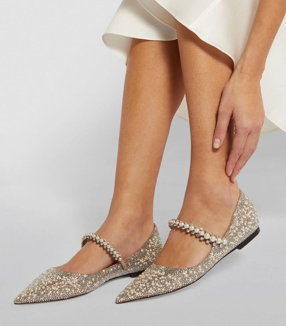 As midnight melts into early morning hours and youβre still twisting and spinning on the dancefloor, you might want to give your heels and feet a well-deserved break. Avoid the free flip flops prepared by the bride and forget about going barefoot β there is always shattered glass at parties like this β by having Jimmy Chooβs Baily flats ready in your handbag. Perfect for moments when youβd rather opt for comfort, the crystal-embellished pair ensures no one even notices you swapped shoes mid-evening.