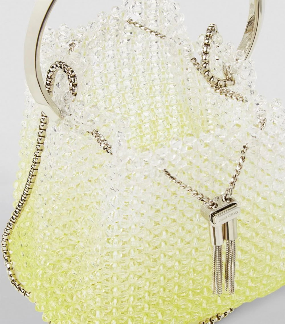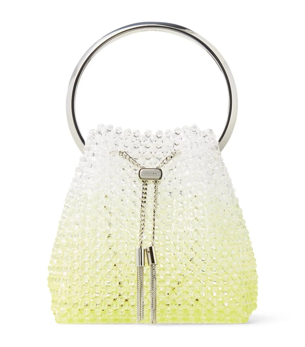 Evoking the House’s penchant for deft style and glamour, Jimmy Choo’s Bon Bon bag is crafted from a bleached beaded cluster and crowned with a circular silver-tone handle. As indulgent a treat as its sweet namesake, the contemporary silhouette is cinched with a drawstring chain and signed off with the brand’s iconic tassels.